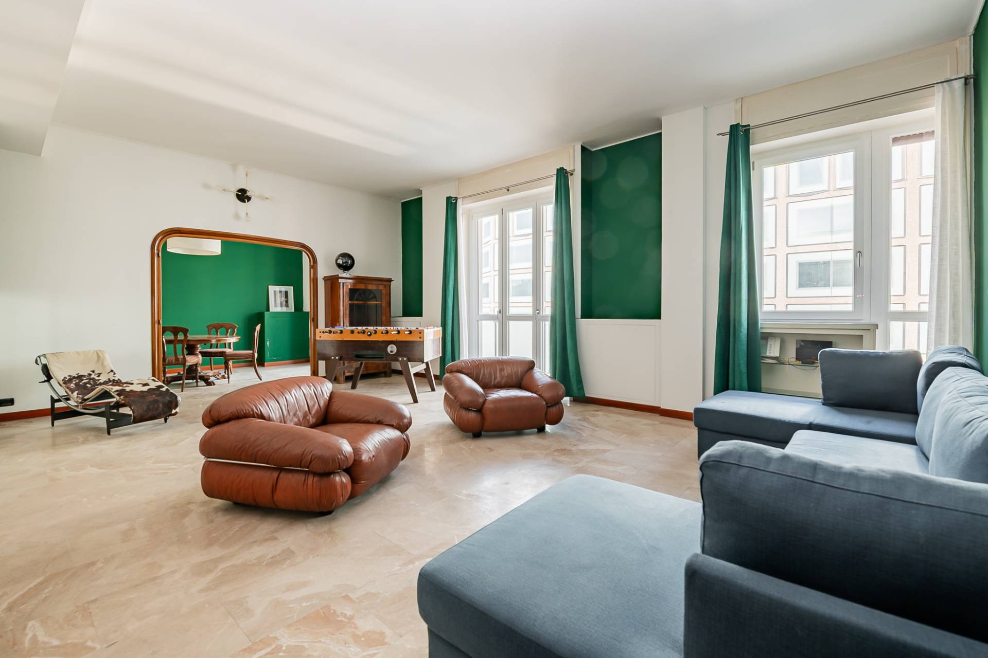 Un Appartamento esclusivo nel cuore di Milano: in elegante stabile anni '70 riqualificato nelle parti comuni, proponiamo abitazione posta al quinto piano, con portineria e ascensore, di 196 mq circa composta da: doppi ingressi, salone doppio con balcone in facciata, sala da pranzo, tre camere, cucina abitabile con balcone, due bagni e ripostiglio. Eventualmente è ricavabile anche un terzo bagno.