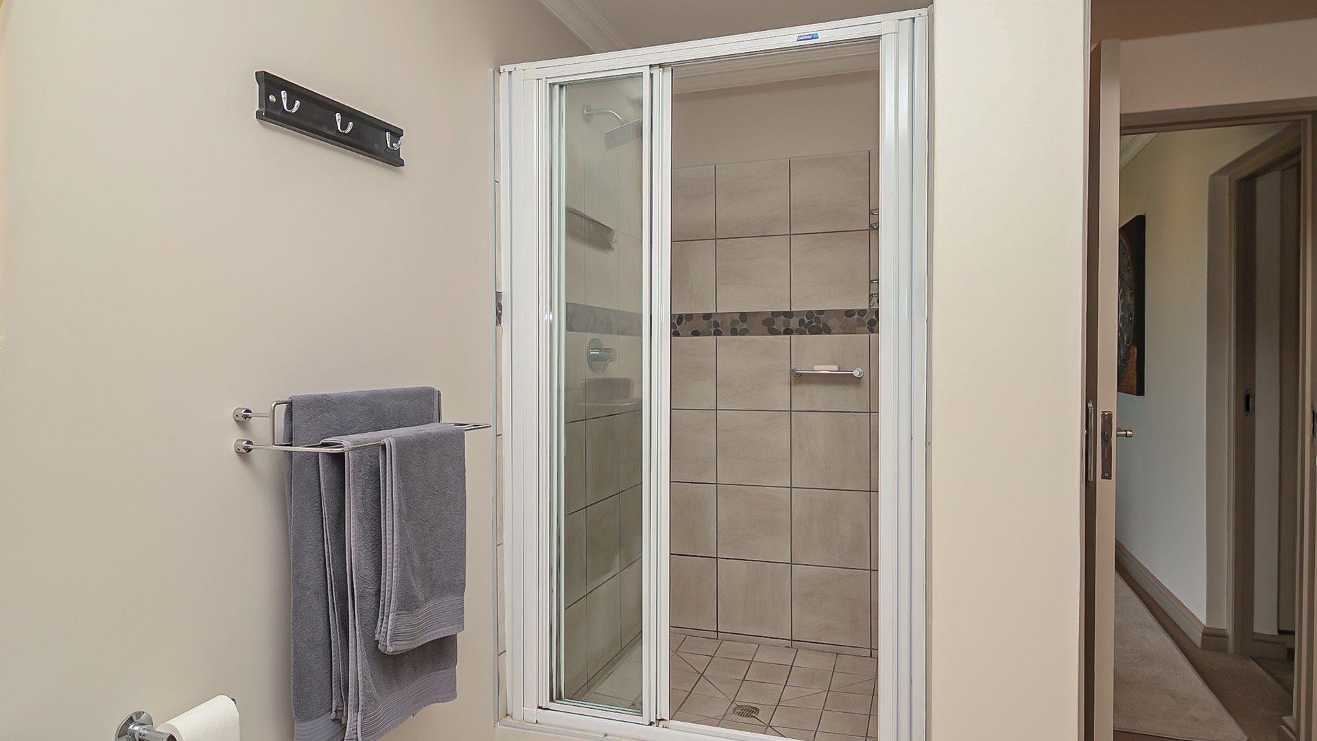 The ground floor features a spacious open-plan lounge and dining area with sliding doors opening onto a covered patio and sparkling pool – ideal for entertaining. The modern kitchen includes a separate scullery and walk-in pantry, while the guest toilet and extra-large double garage add to the home’s practicality.