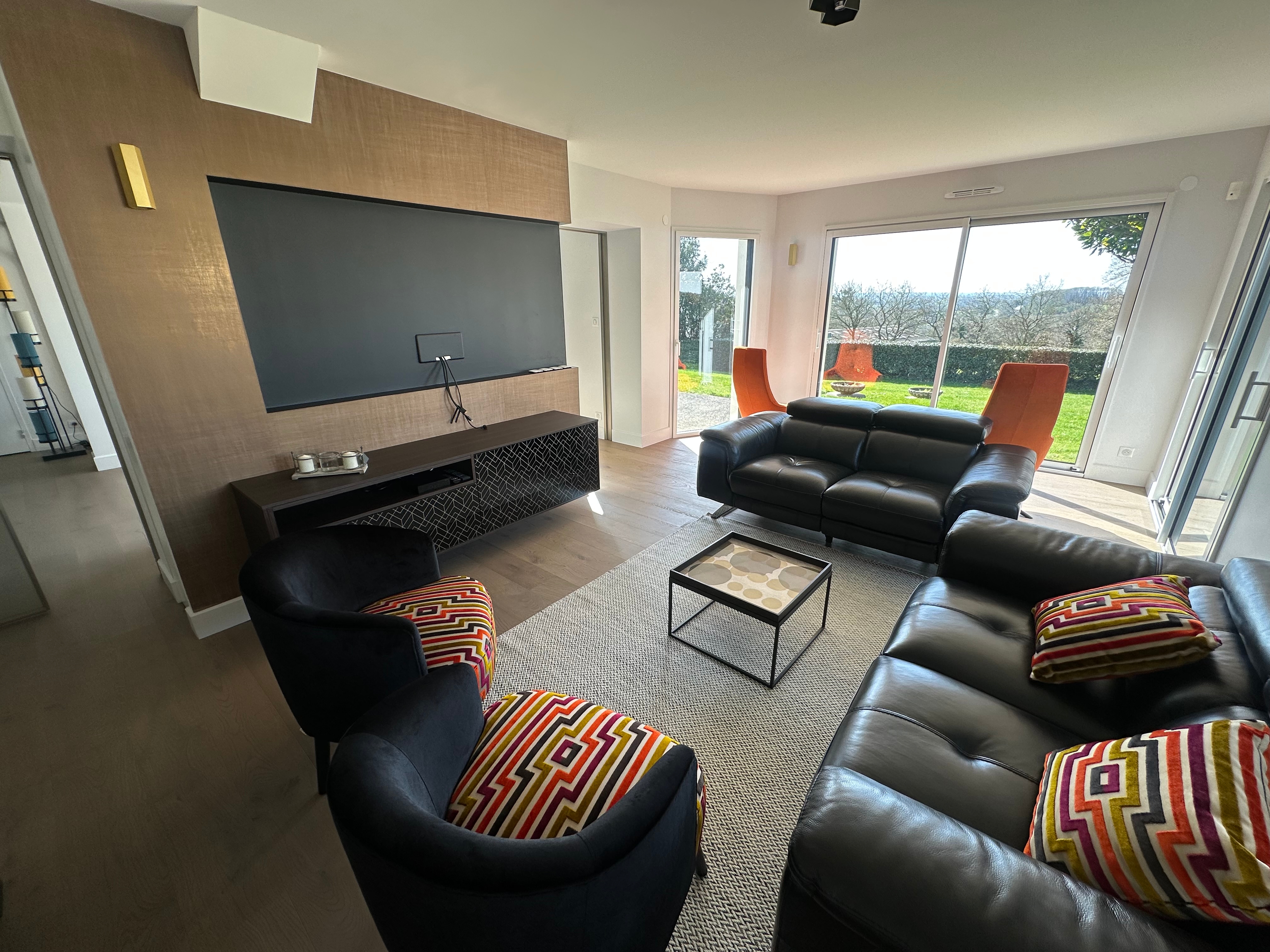 This beautiful property, built in 1990, was completely renovated by an interior designer in 2020. It offers 150 m² of living space on a 2234 m² plot, in a quiet, south-facing location. It comprises 6 rooms, including 4 bedrooms, with a master suite on the ground floor featuring a dressing room, shower room, and toilet, ideal for optimal comfort.