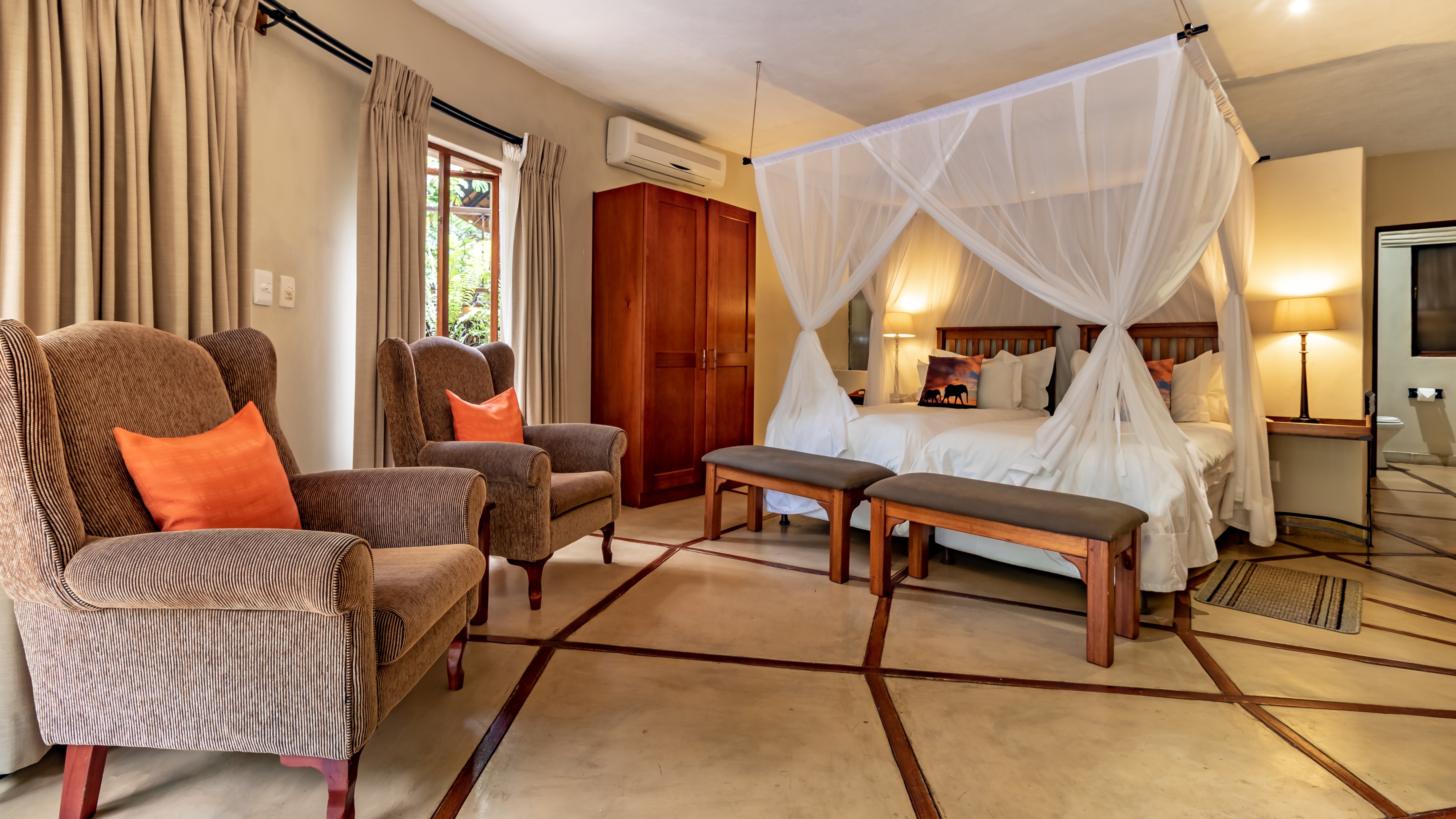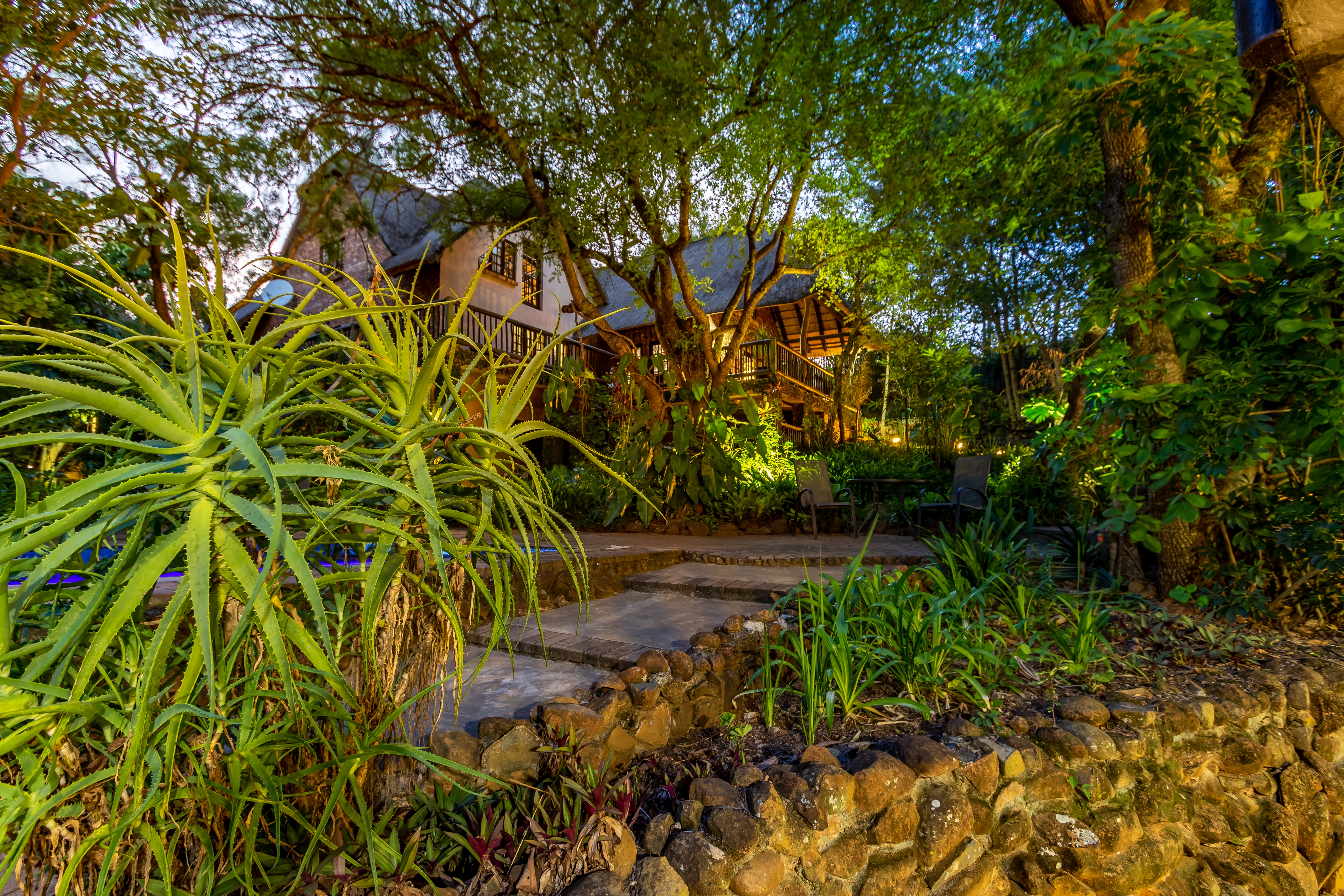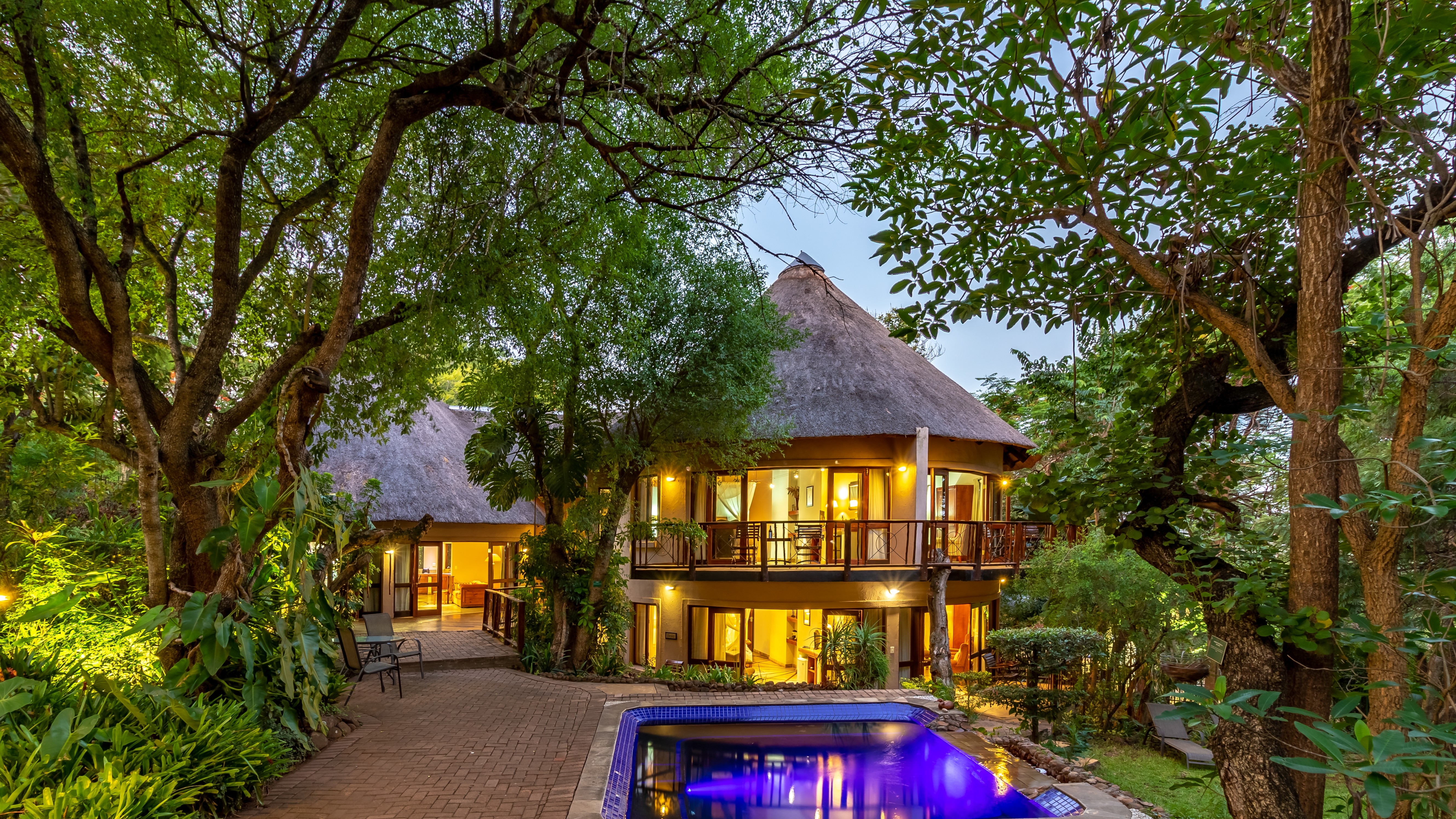 The outdoor areas are designed for relaxation and privacy, featuring beautifully landscaped subtropical gardens, abundant birdlife, and a sparkling pool—an idyllic retreat after a day of safari or sightseeing. The lodge’s prime location provides effortless access to major regional highlights, including: