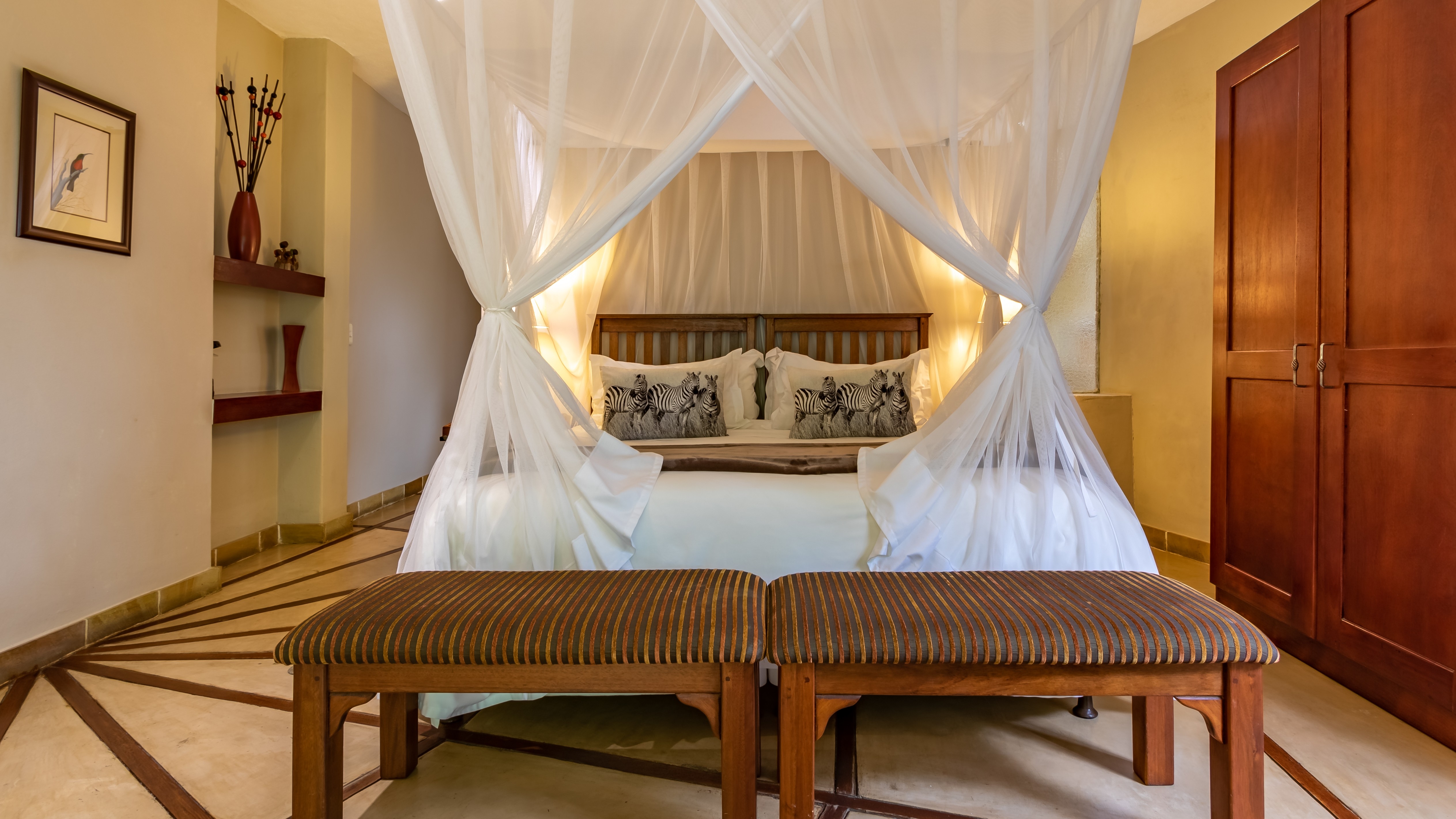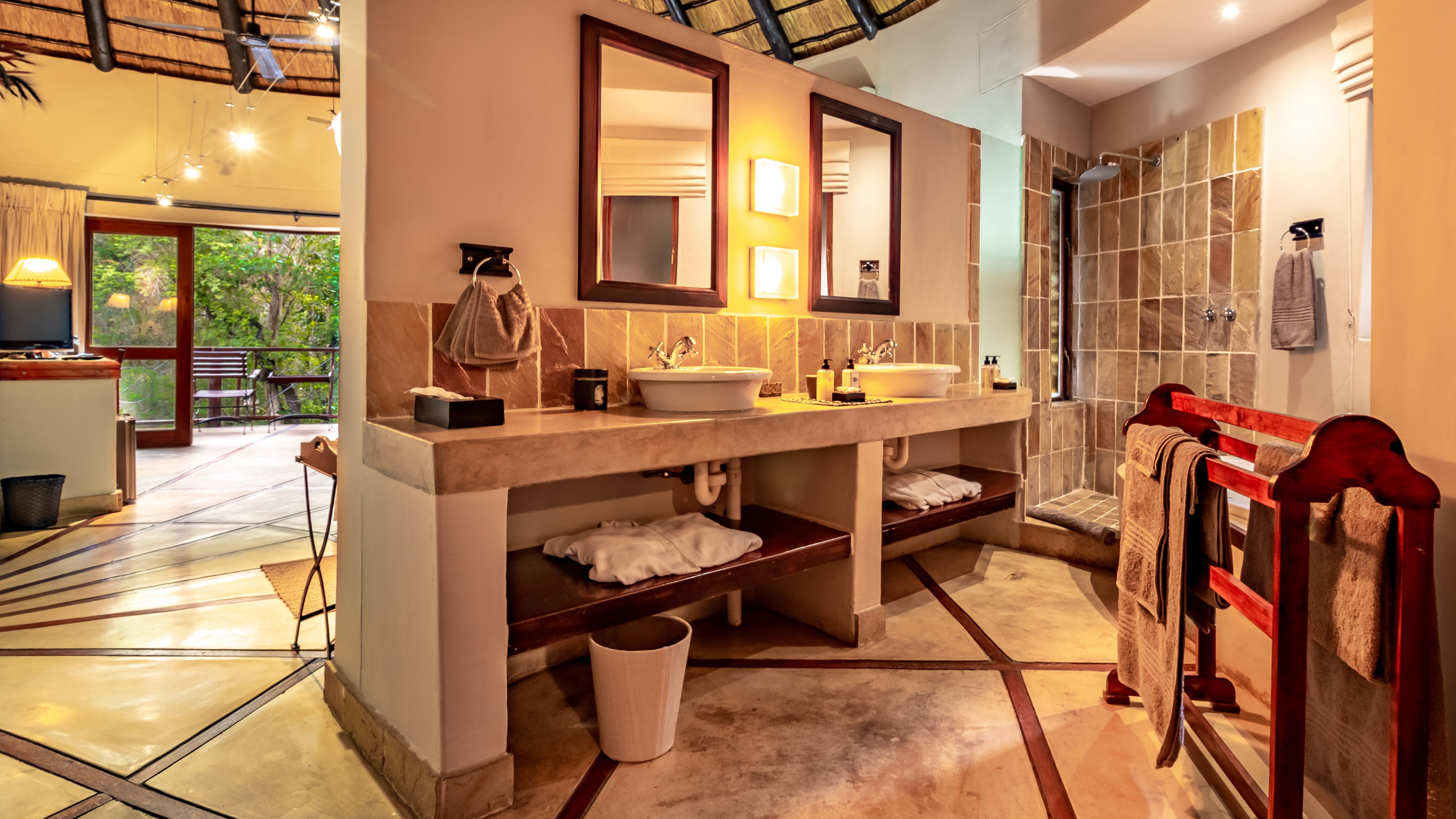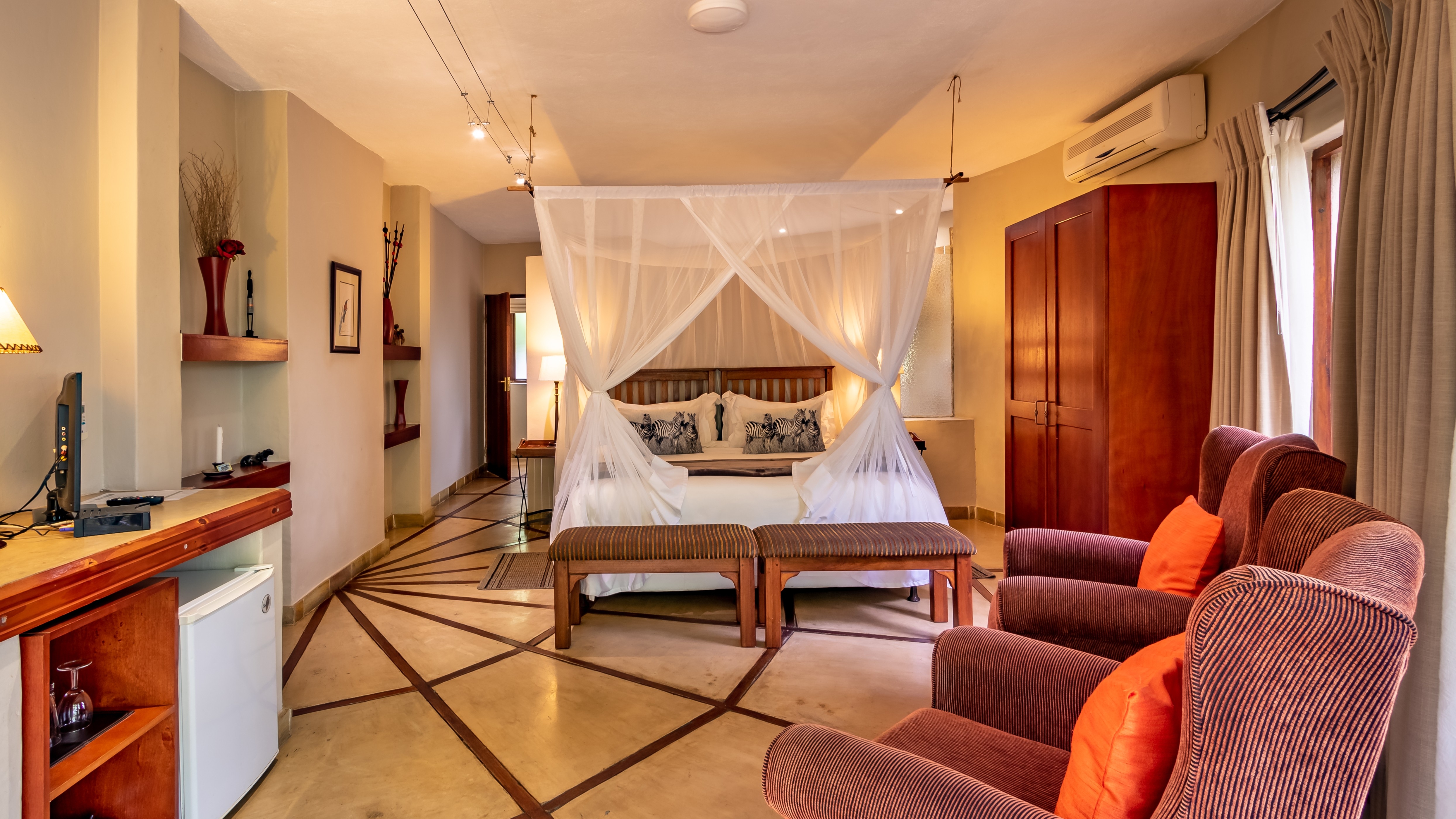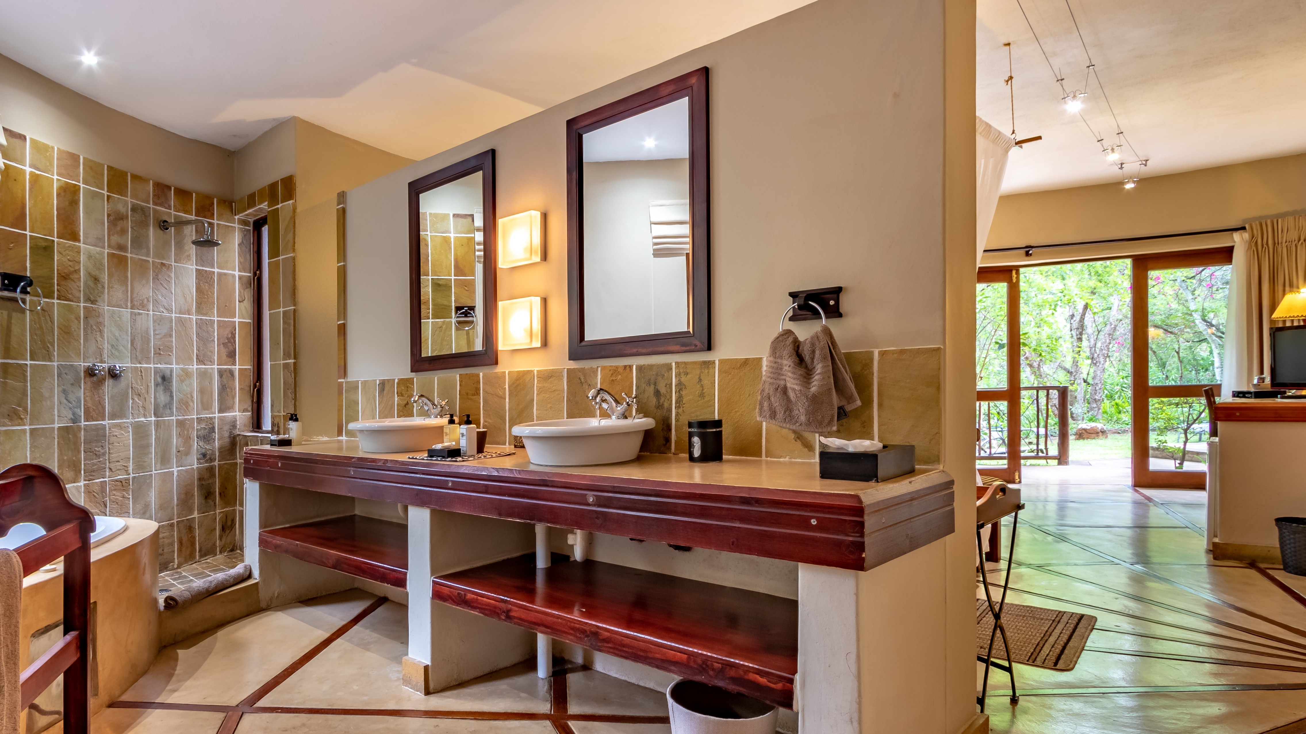 The outdoor areas are designed for relaxation and privacy, featuring beautifully landscaped subtropical gardens, abundant birdlife, and a sparkling pool—an idyllic retreat after a day of safari or sightseeing. The lodge’s prime location provides effortless access to major regional highlights, including:
