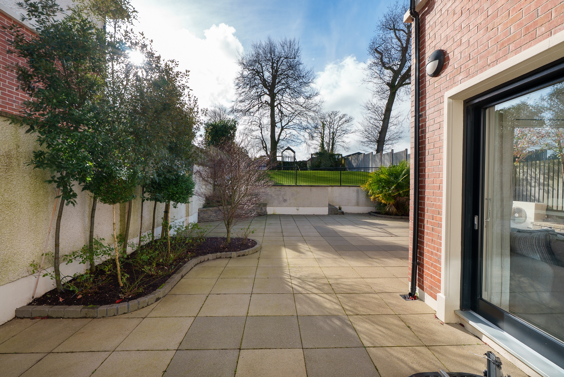 Maintenance free premium artificial grass in the landscaped back garden