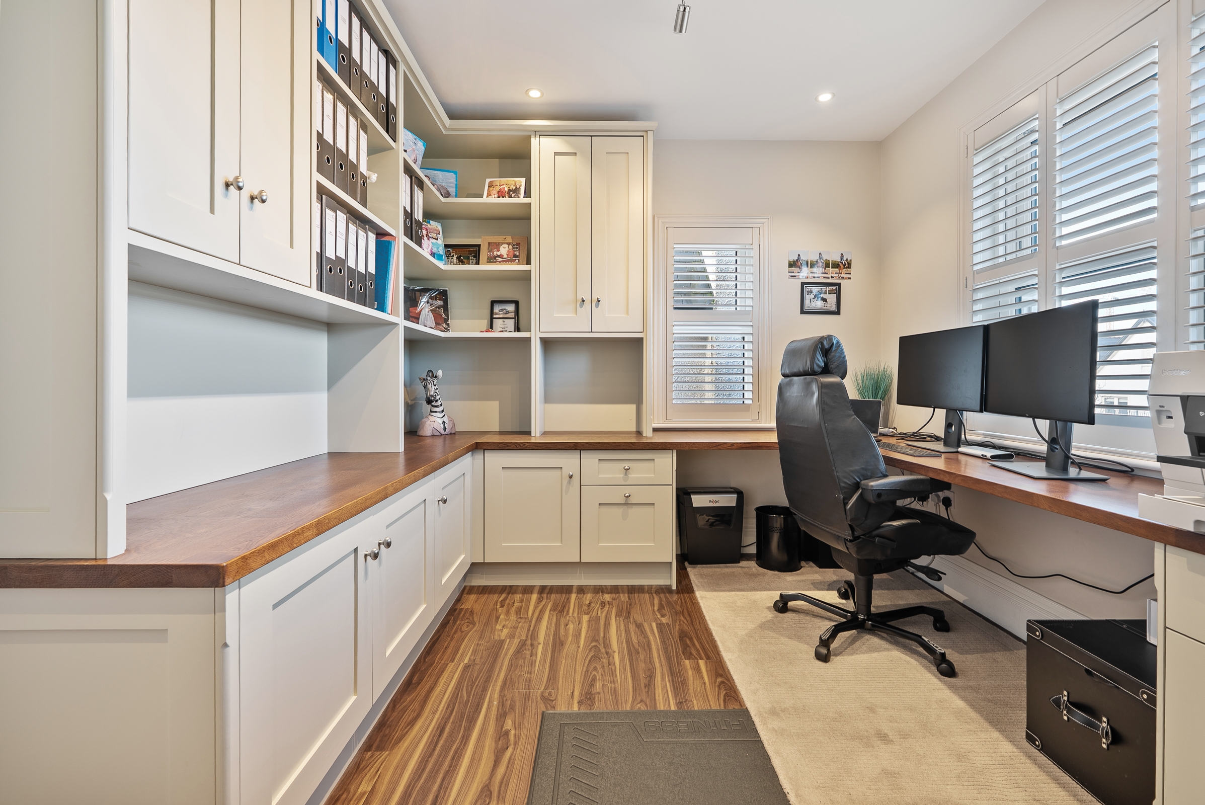 Currently in use as a fully fitted home office, this dual aspect bedroom has one window to the front of the property and one window to the side, built-in units, recessed spot lighting, radiator and Amtico flooring.